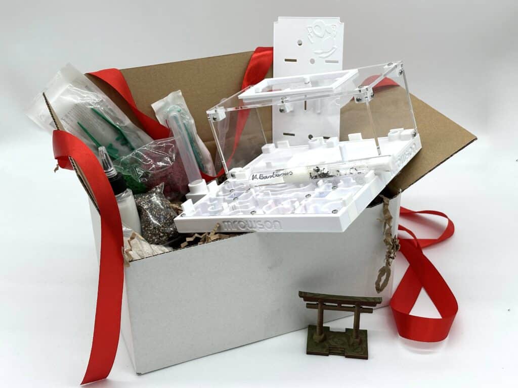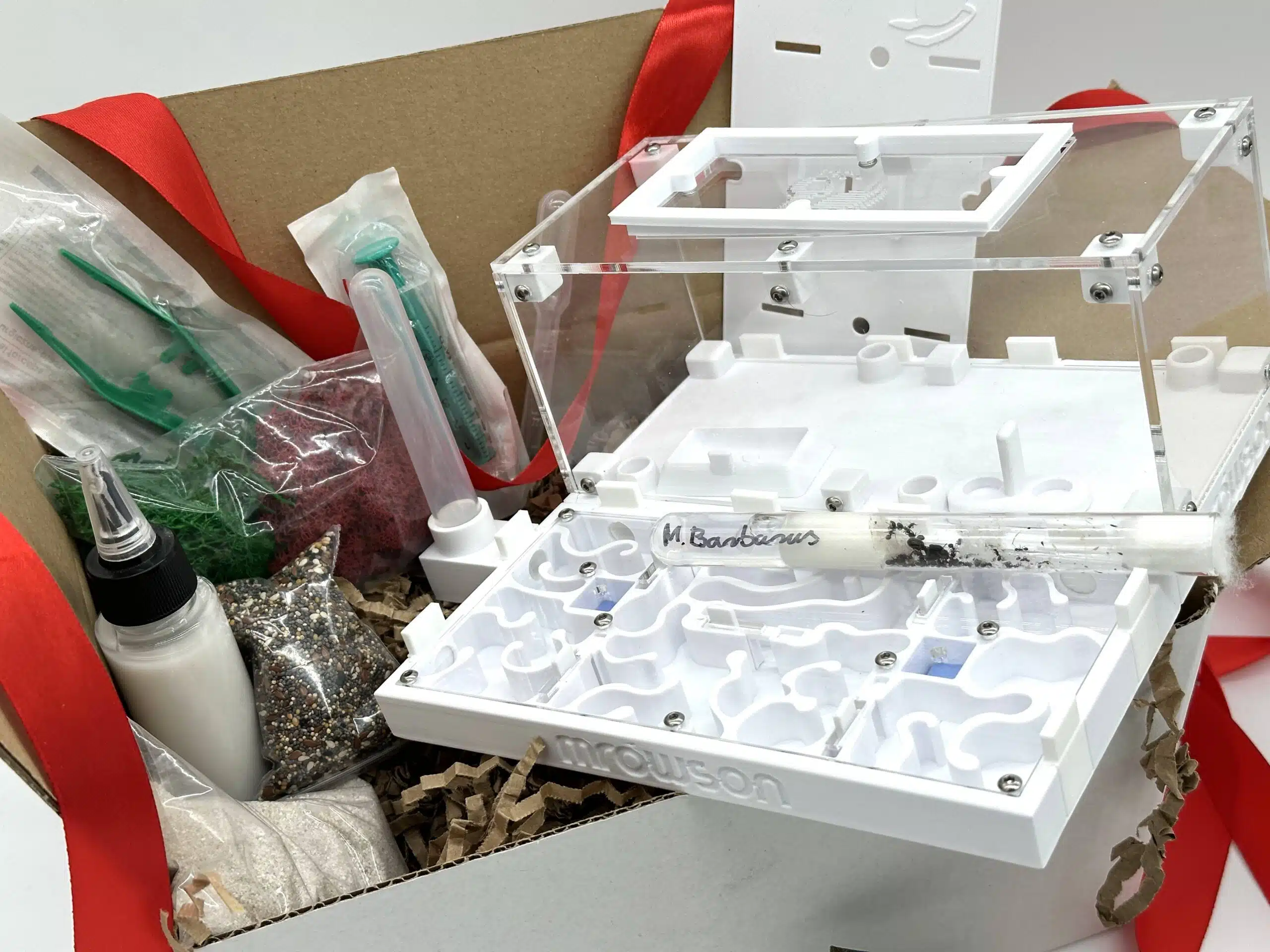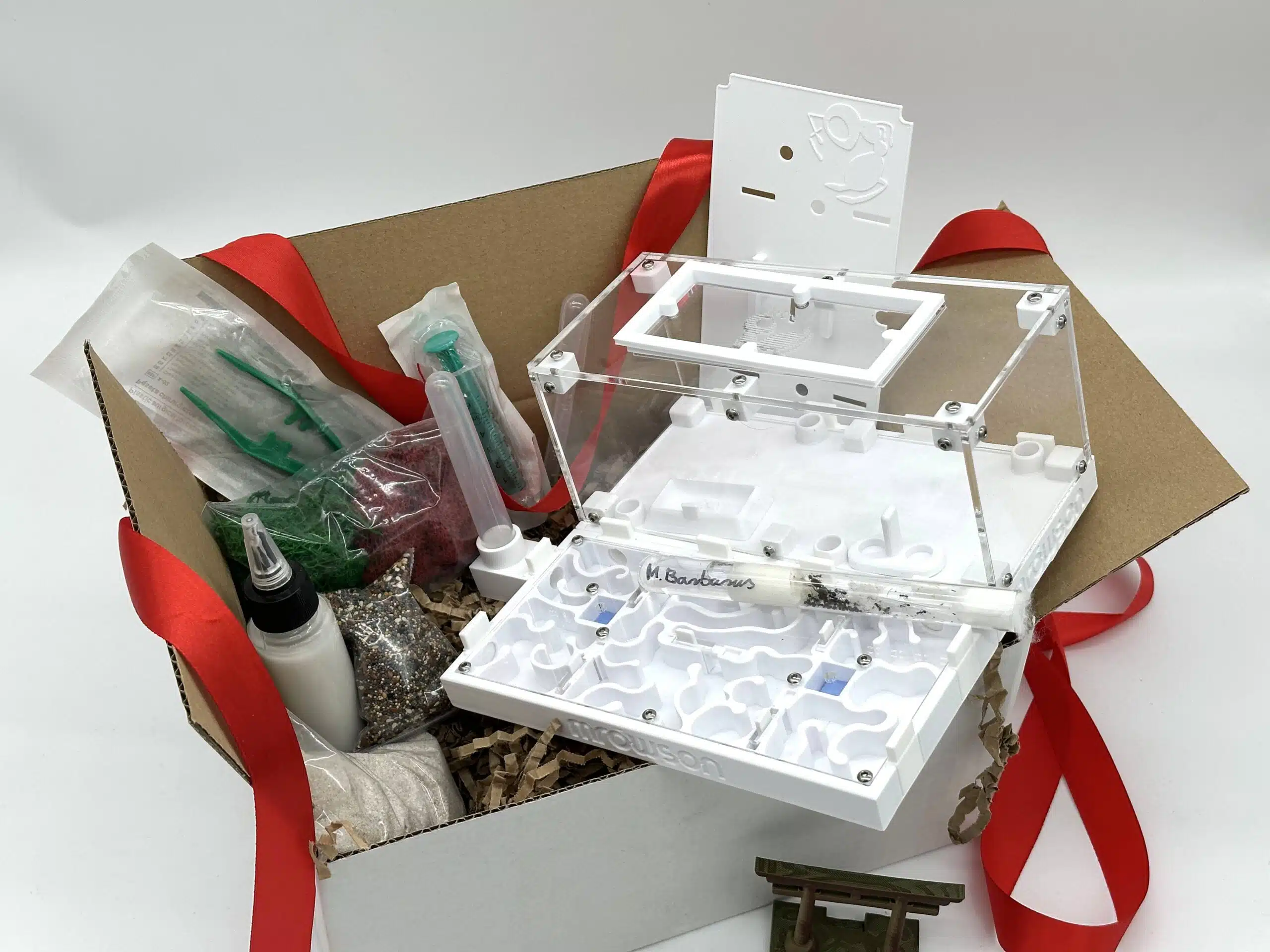 Zestaw prezentowy Manicja White to kompletny, elegancki start w hodowlę mrówek żniwiarek Messor barbarus. W białym kartonie przewiązanym czerwoną wstążką z kokardką dostajesz kolonię 20–30 robotnic oraz formikarium MK II Manicja + wszystkie akcesoria, których potrzeba, aby od razu zacząć przygodę z mrówkami – bez biegania po dodatkowe rzeczy. Idealny prezent dla dzieci, młodzieży i dorosłych lubiących mądre, nietuzinkowe prezenty.
